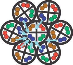Standards established by the IEEE call for the electronics (transmitters and receivers) to be specified in such a way that they properly operate with the specified cabling channel in a bundle of seven cables grouped in a circular configuration. A 55-meter CAT 6 channel is one of the cabling links that, by design, should meet the requirements for 10GBASE‑T.